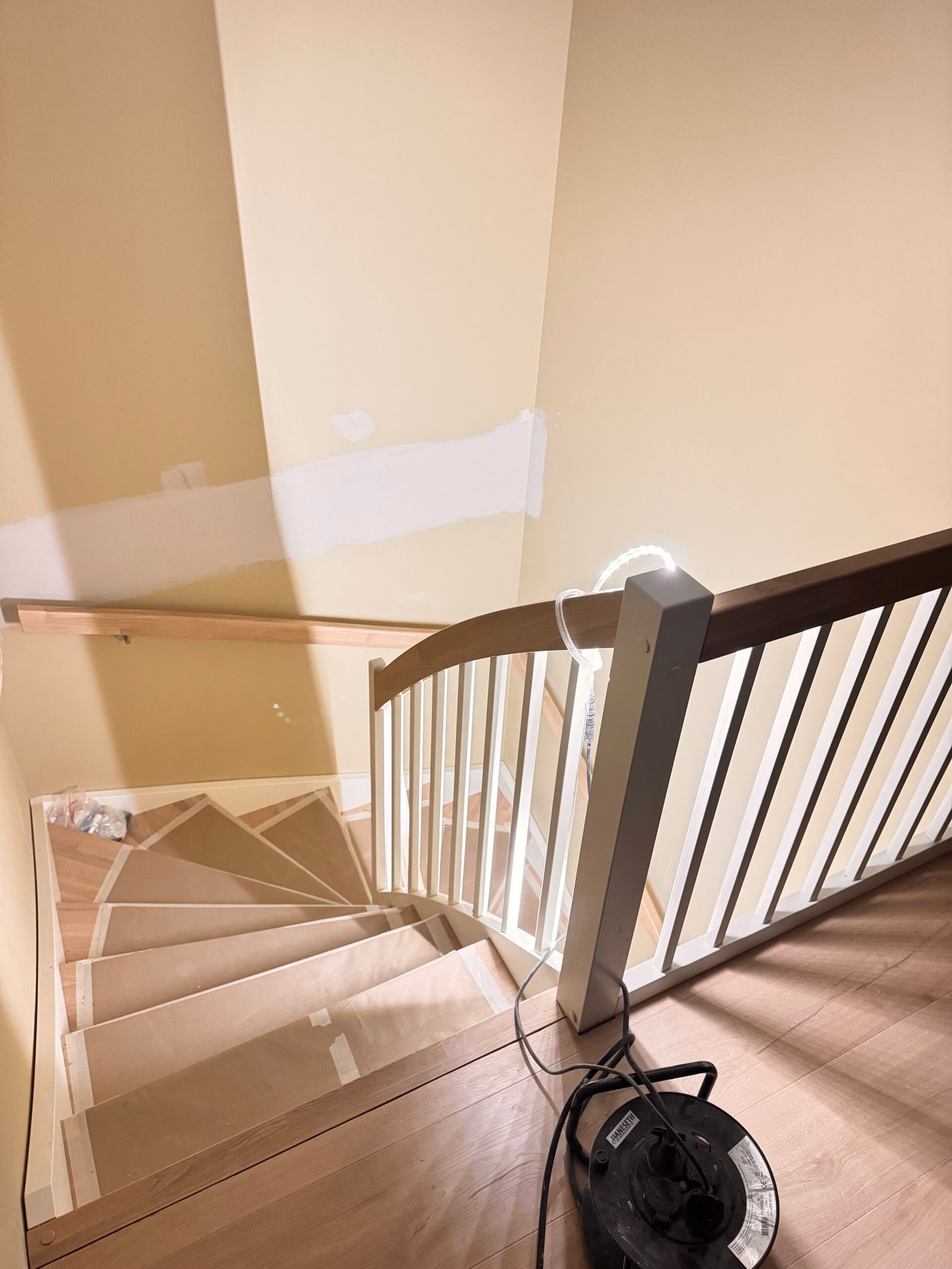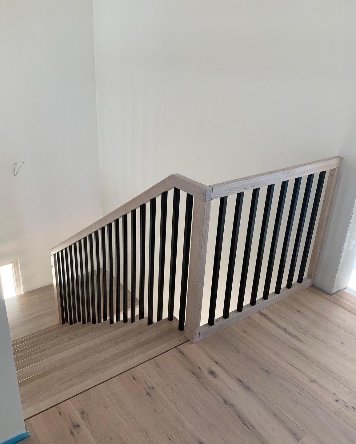 Rett trapp med eik spilevegg