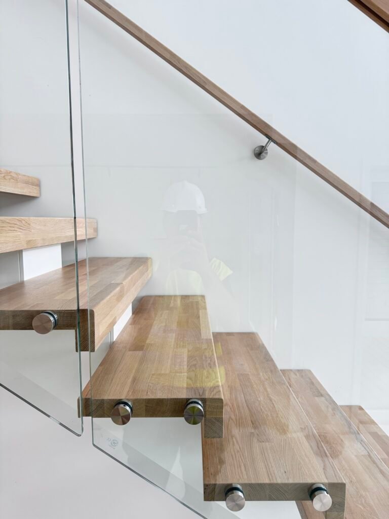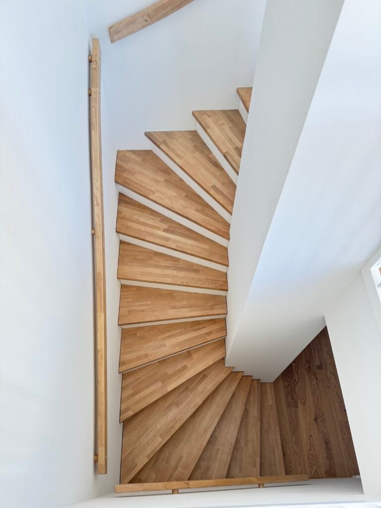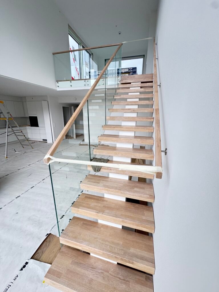 I prosjektet ble det også levert trapper av typen Stockholm, som er en trapp med underliggende vange. Denne konstruksjonen gir et solid og elegant uttrykk og er en populær løsning i moderne boligprosjekter.